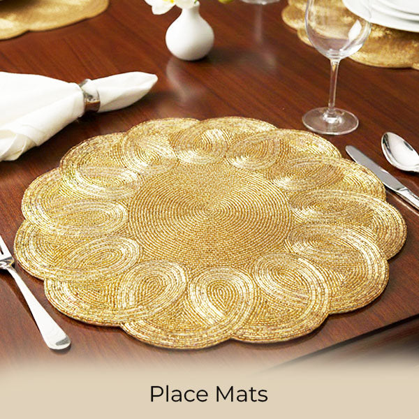Elegant Black Table Mat with Golden Border