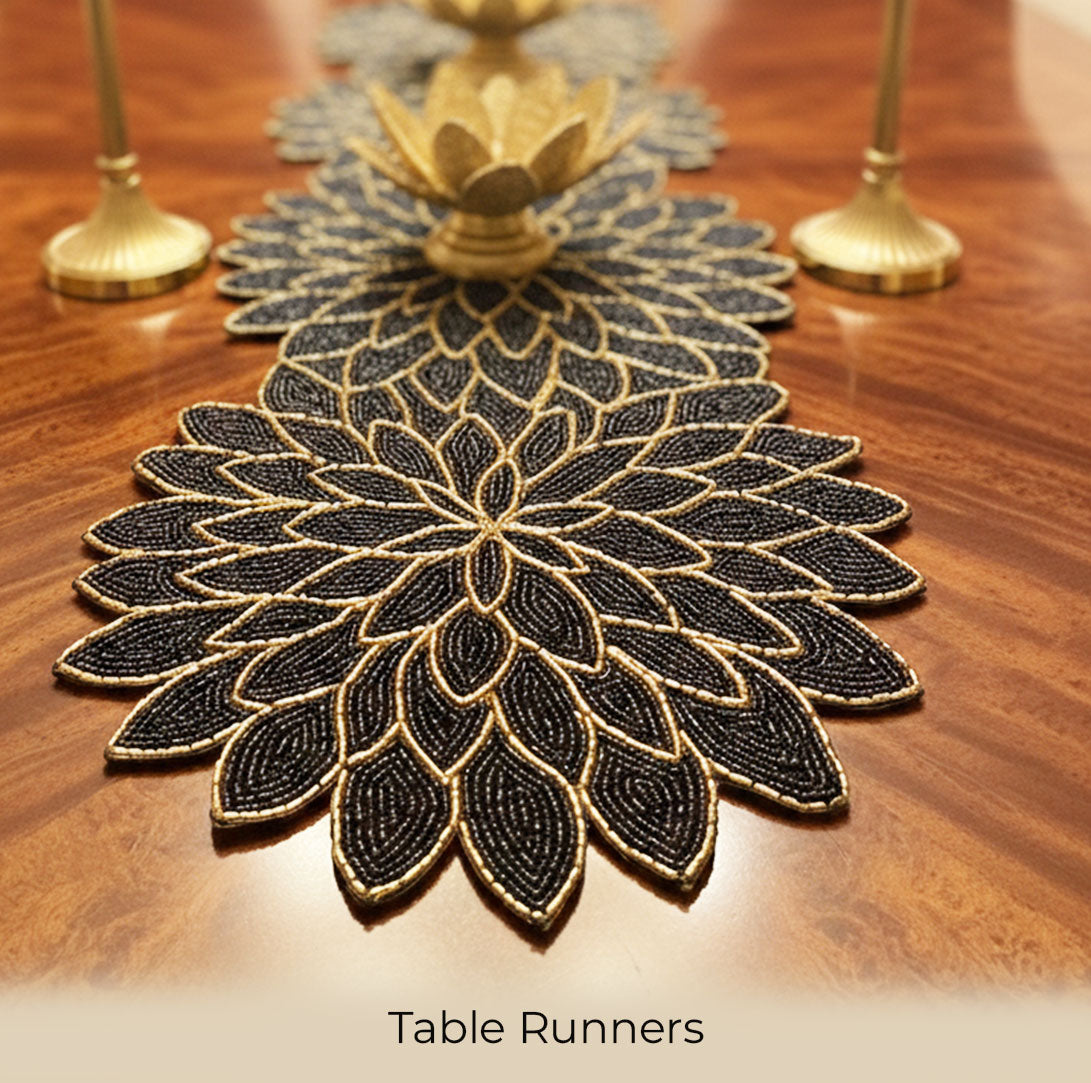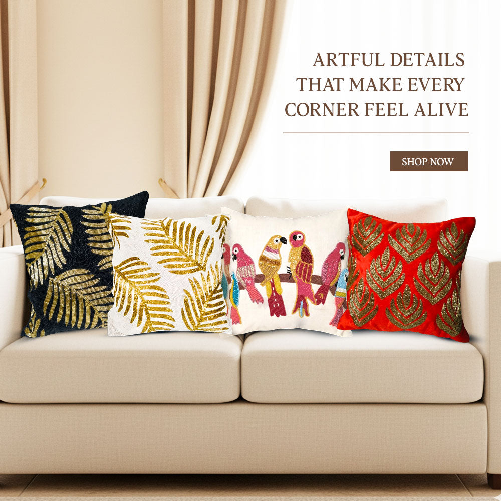 At Zaaree, we’re dedicated to bringing the soul of Indian craftsmanship into modern homes. We celebrate the artisanal traditions that flourish in every corner of the country. Our journey begins with The Bling Edit, a festive ode to India’s love for sparkle. Each piece shines with hand-done embroidery, beadwork, and intricate detailing from central-Indian artisans; every creation honours their skill, supports their communities, and preserves age-old craft. And through their artistry, we hope to bring a touch of India’s timeless magic into your home.